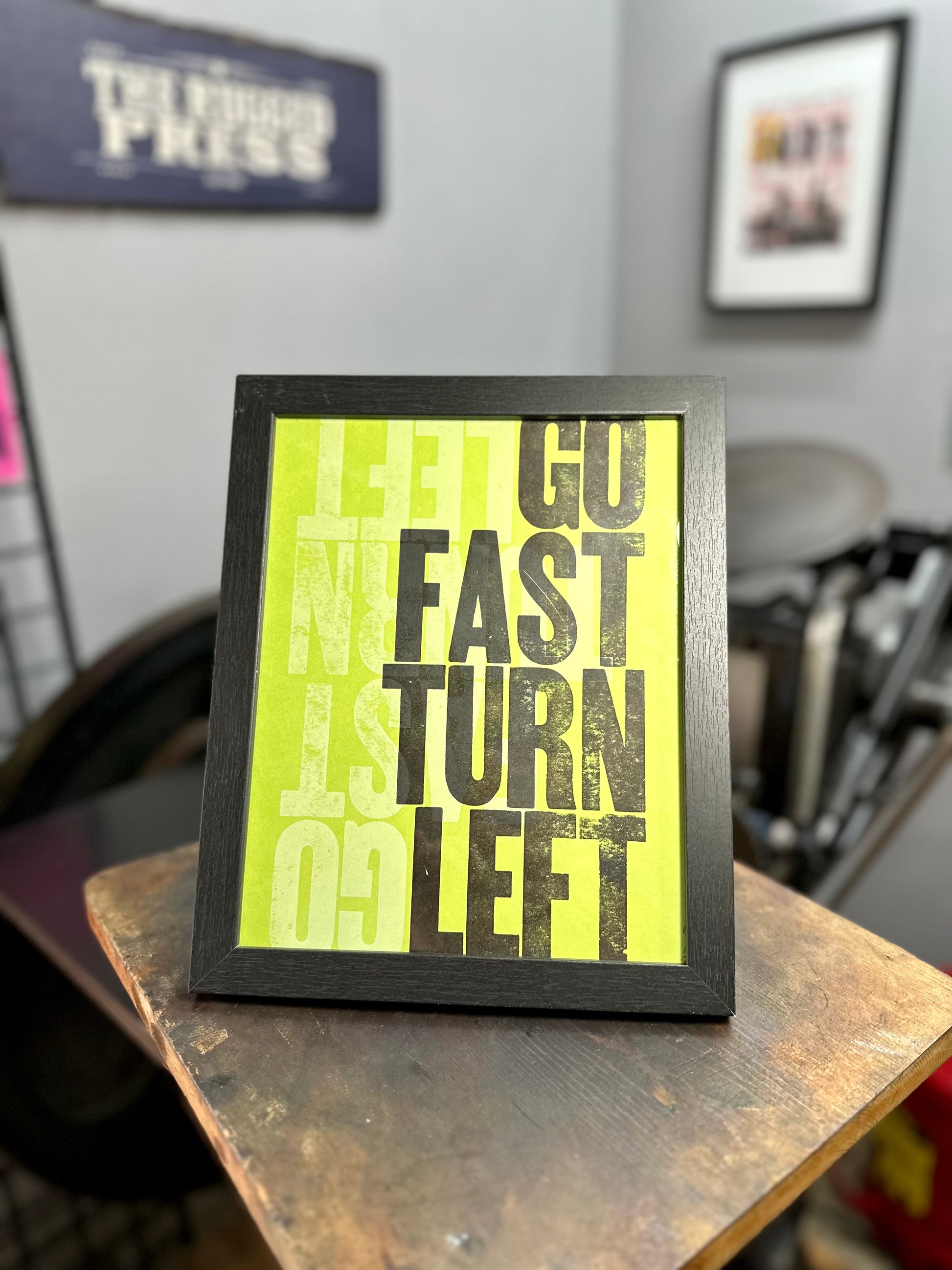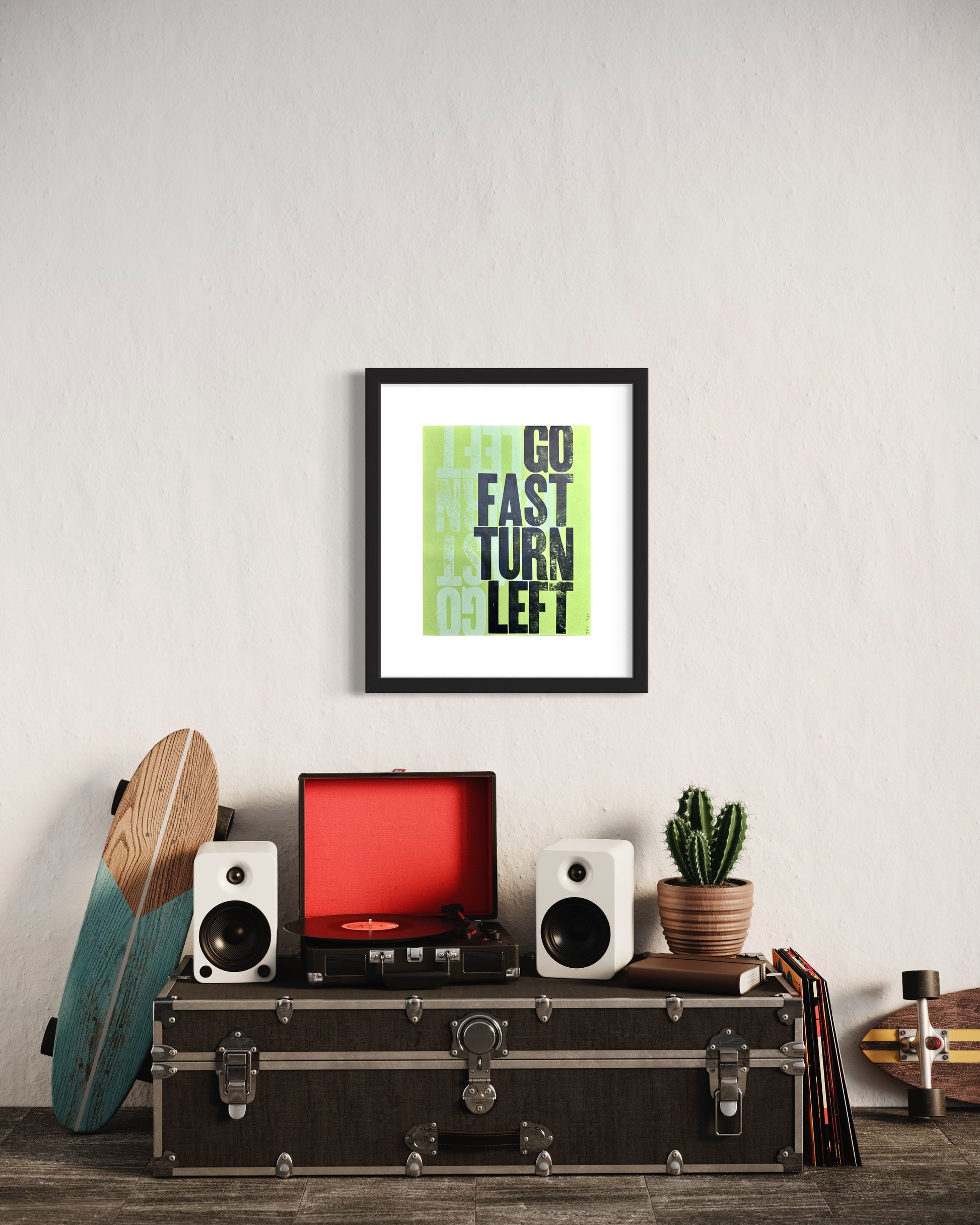 Start your engines and get ready to go fast! This letterpress print is perfect for any race fan. Inspired by the rich racing history in Indiana and the Indianapolis 500, this print is perfect for any race fan.