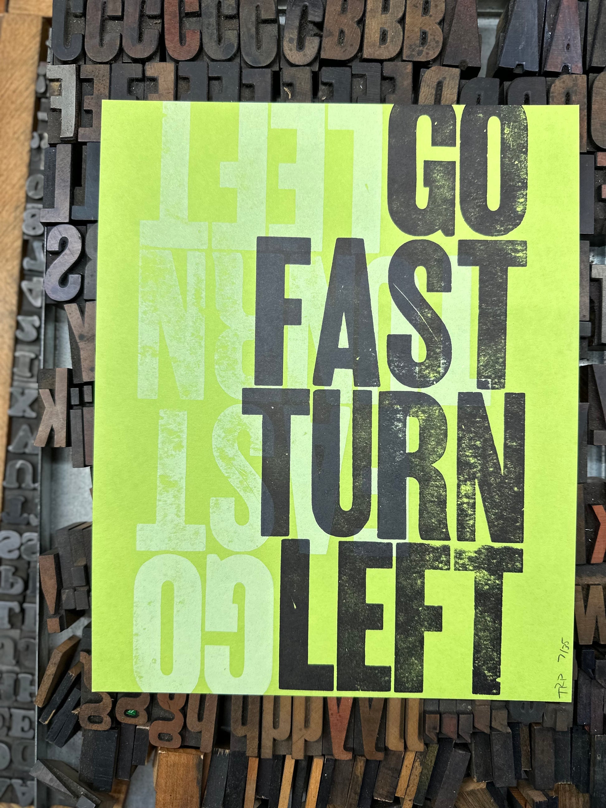 Due to the nature of letterpress printing, individual prints may vary. This is from the handmade aspect of printing and other variables such as the age of the type and ink coverage. This slight variation is part of the beauty of letterpress and what makes each print distinctive.